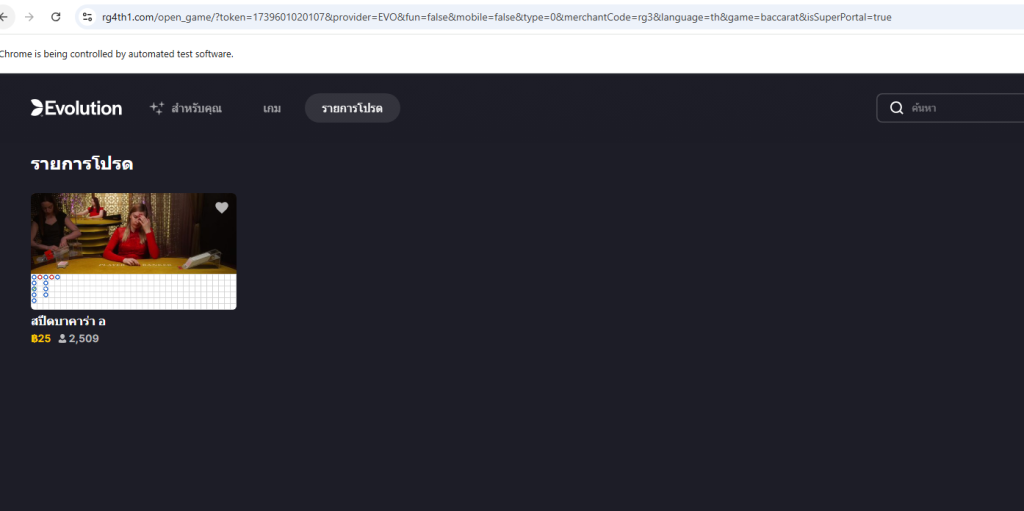 7. ก่อนรัน ท่านจะต้องเข้าไปตั้งค่า ค่ายเกมส์ที่บอทเล่น นั่นคือ Evolution โดนท่านจะต้องกำหนดรายการโปรด คือเลือกห้องที่จะให้บอทเล่น 1 ห้องไว้ก่อนเสมอ โดยบอทจะมาเลือกห้องที่จะเล่นจากรายการตรงนี้ ถ้าเราไม่ได้ตั้ง บอทจะหาไม่เจอ